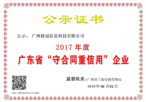 2010-2017高新技術(shù)企業(yè) 2018年度廣東省“守合同重信用”企業(yè) 廣州市科技創(chuàng)新小巨人企業(yè) 廣州市企業(yè)研究開(kāi)發(fā)機(jī)構(gòu) 廣東移動(dòng)公司采購(gòu)名錄入選單位 阿里云合作伙伴單位 金蝶軟件合作伙伴單位 南航飛常好聯(lián)合運(yùn)營(yíng)單位 2016年獲深圳一體投資控股集團(tuán)投資入股 華潤(rùn)置地供應(yīng)商入選單位 廣東聯(lián)通綜合型物聯(lián)網(wǎng)服務(wù)供應(yīng)商